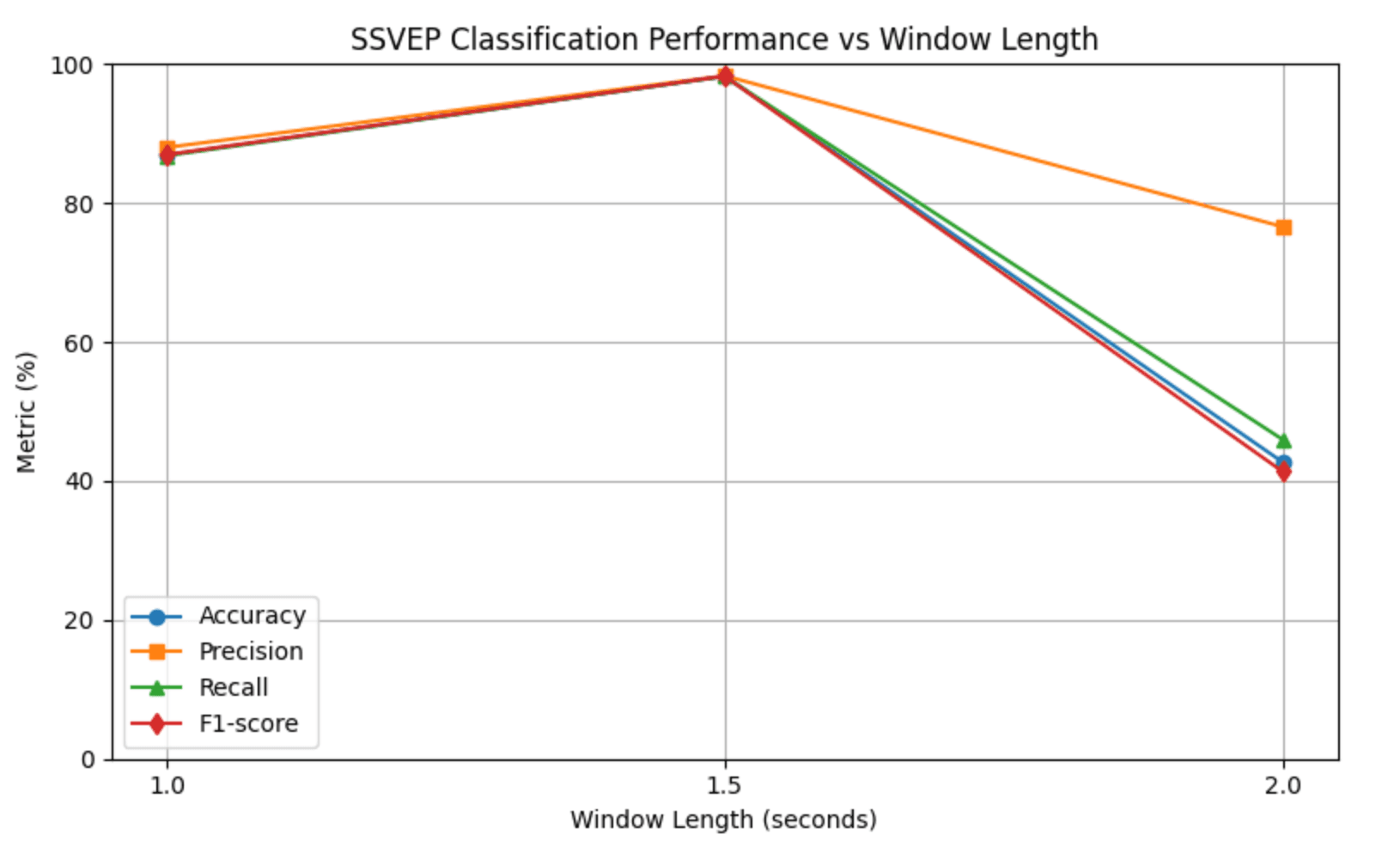 - Track performance vs window length + include harmonics (SSVEP often benefits from that)